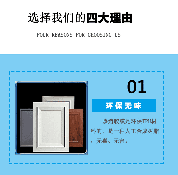 主要用于吸塑門、模壓門替代噴膠工藝,直接將膠膜貼合在PVC裝飾膜的背面,節(jié)省人工、提高質(zhì)量的同時(shí)又能降低成本.